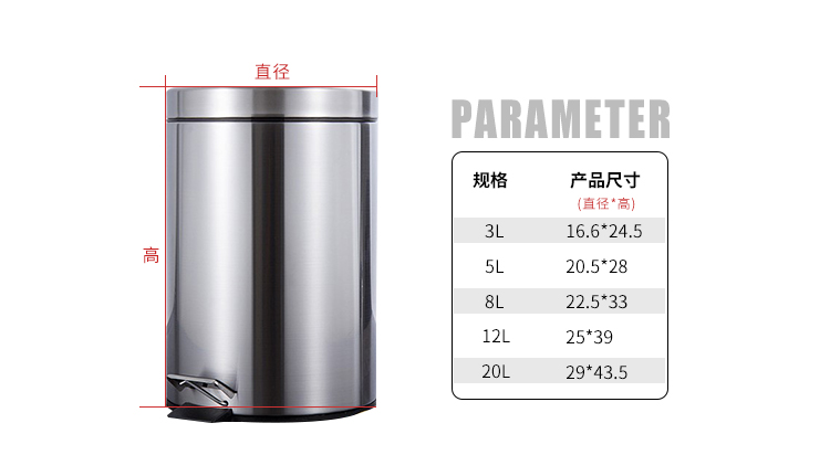 海斯迪克 圆形垃圾桶 HK-847 12L 1个