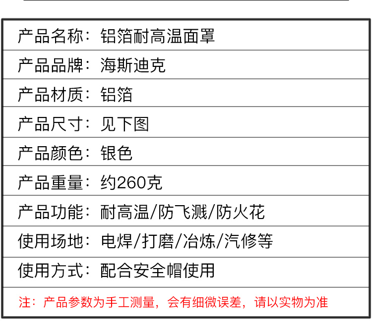 海斯迪克 实验室耐高温铝箔防护面罩 HKCL-589 铝箔面罩 1个