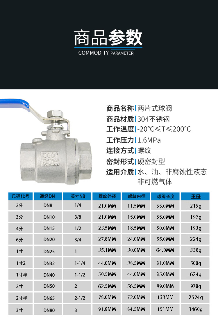 海斯迪克 二片式球阀 HK-555 DN32轻型 1个