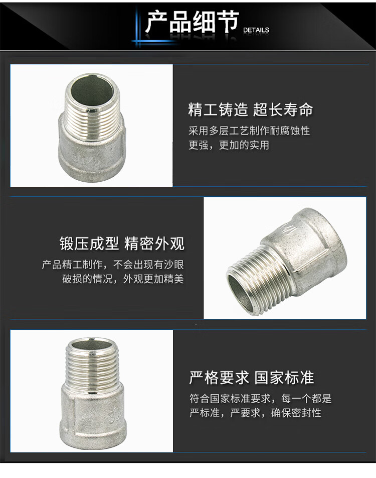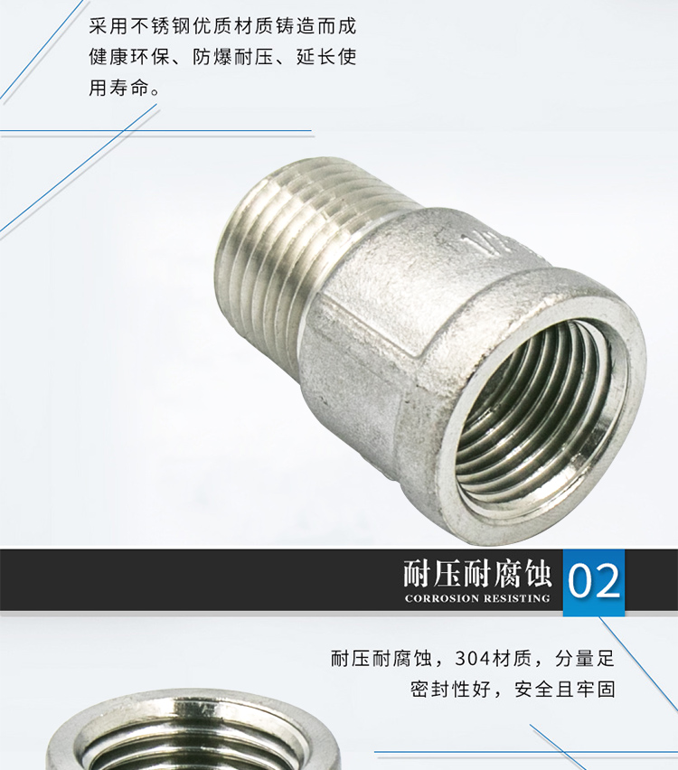 海斯迪克 304不锈钢内外牙直接丝扣 HKZ-46 DN25(1) 1个
