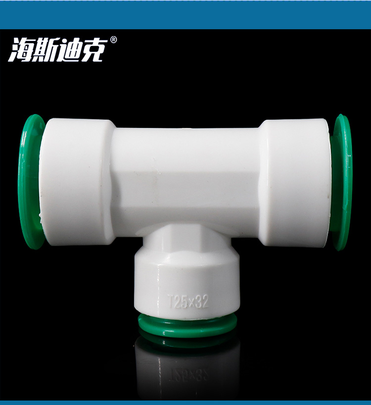 海斯迪克 PPR免热熔水管快速活接 HKCL-770 32×25 异径三通 1个