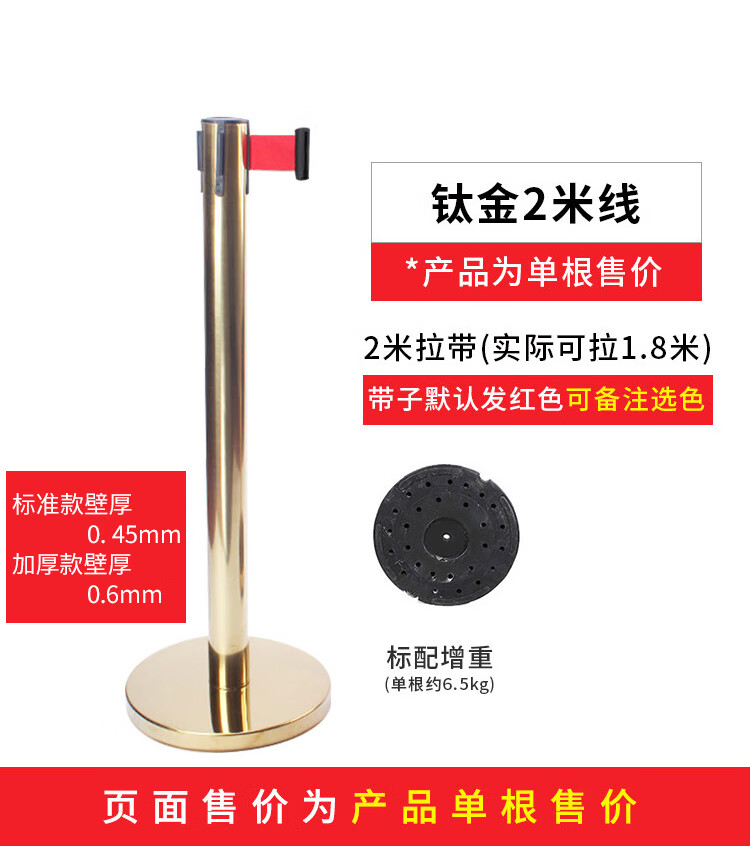 海斯迪克 一米线栏杆礼仪柱 HKL-250 钛金色款配3米带 标准款 1件