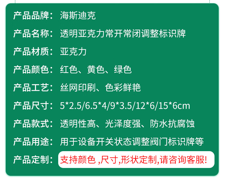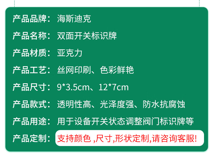 海斯迪克 双面阀门吊牌 HKZ-144 亚克力 定制 请联系客服 1个