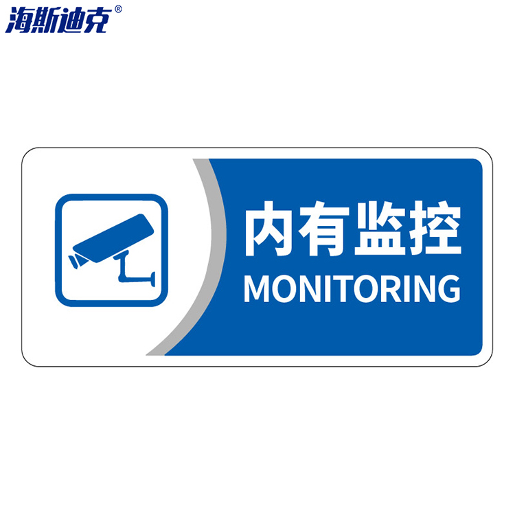 海斯迪克 亚克力门牌带背胶 HKBS05 内有监控/蓝 25.8×12cm 2张 1包