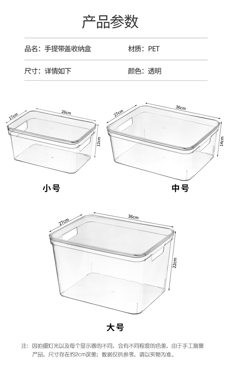 海斯迪克 桌面提手收纳盒 HKCL-244 PET 360*270*220mm 1个