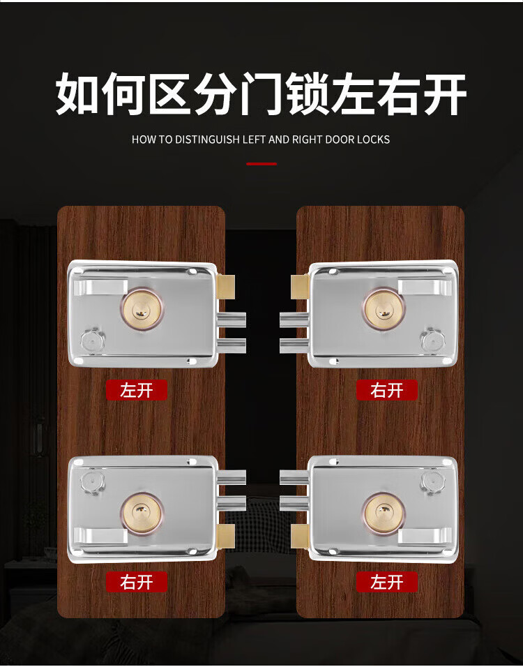 • 不锈钢老式大门锁 月牙右开