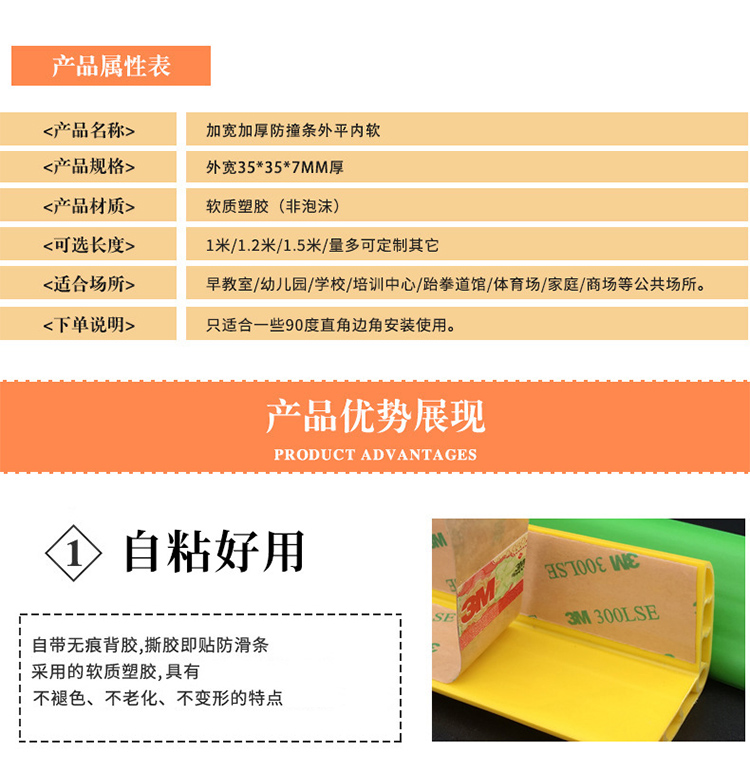 海斯迪克 幼儿园学校防撞条护墙角防磕碰条 HKL-287 米白色 1m长*约3.5cm宽*约7mm厚 1个