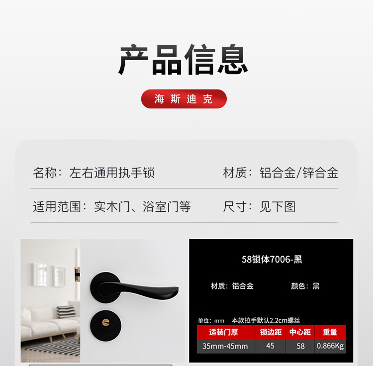 左右通用 72锁体7026-黑