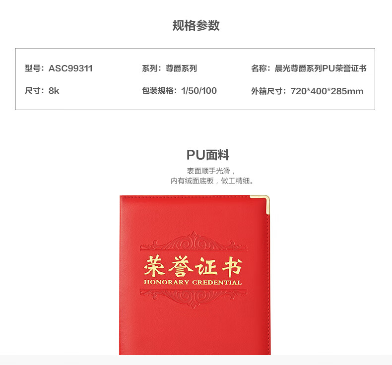 晨光 荣誉证书 ASC99311 255*177mm 8K 1本