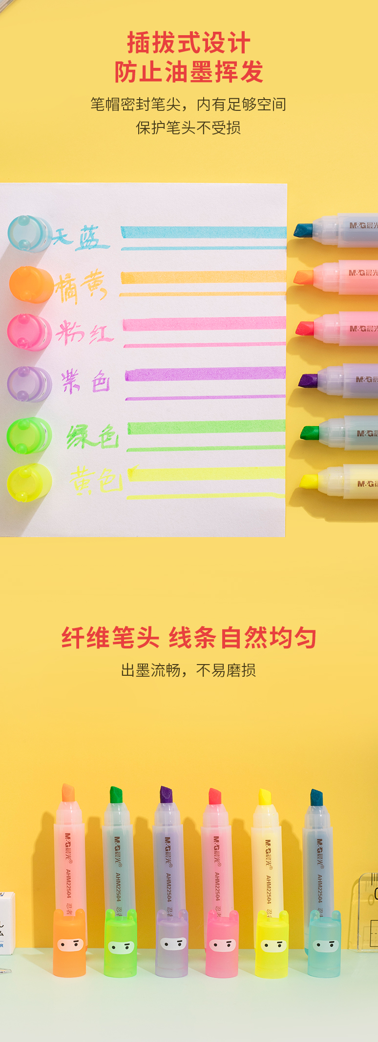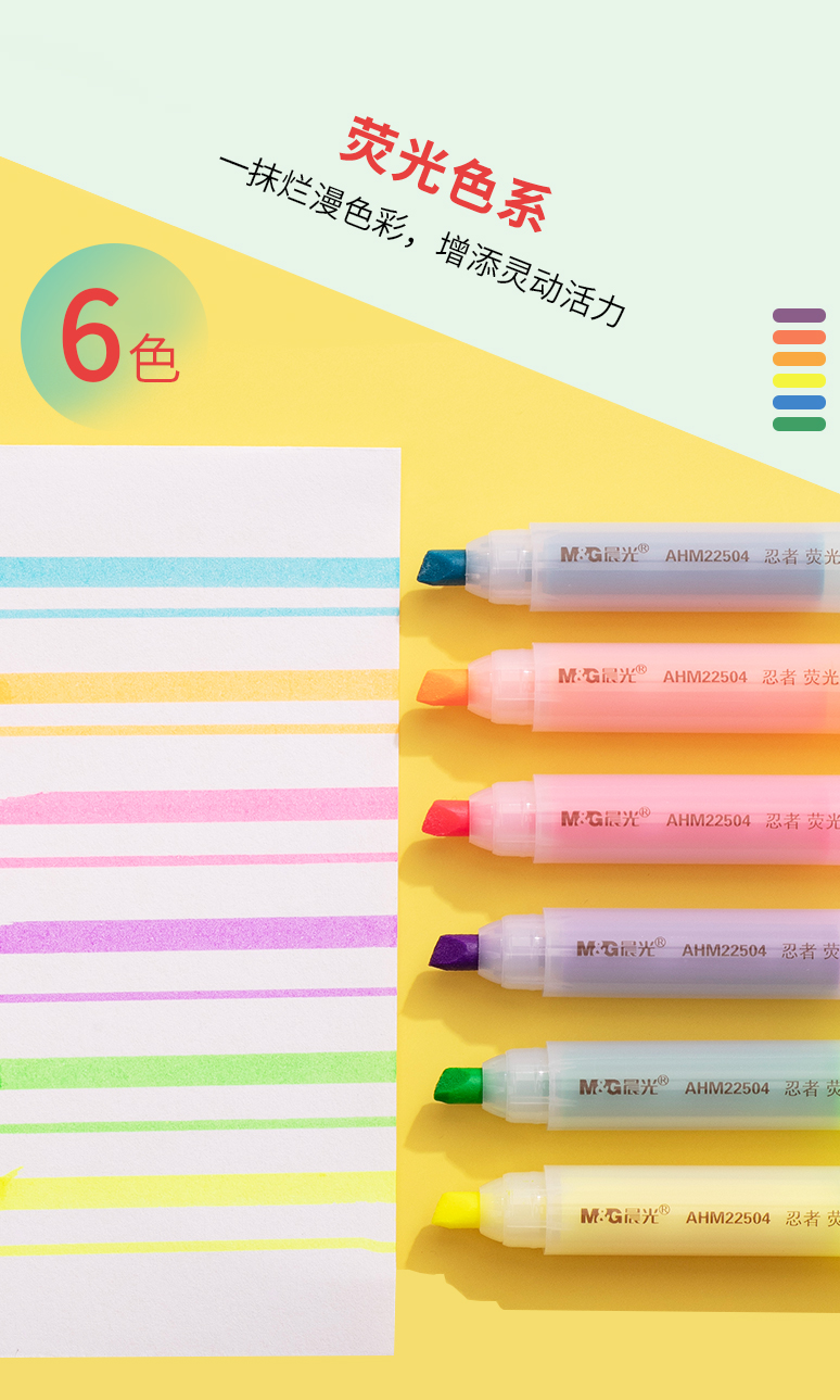 晨光 单头荧光笔 AHM22504 忍者6色 6支 1盒