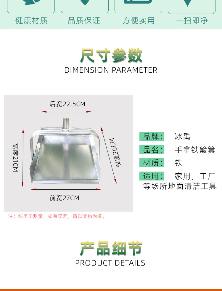 冰禹 清洁工具 BYaf-46 平把铁簸箕 10个 1件