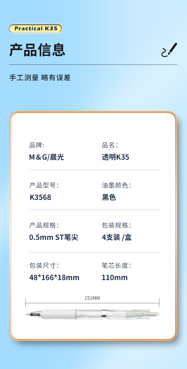 晨光 按动中性笔 AGPK3568 0.5mm 黑色 4支 1盒