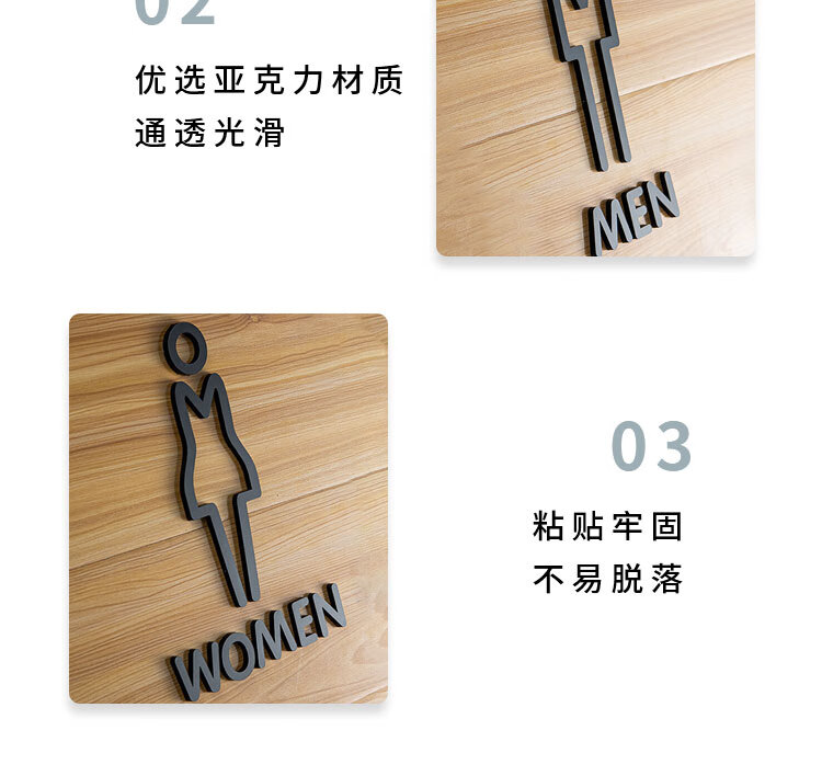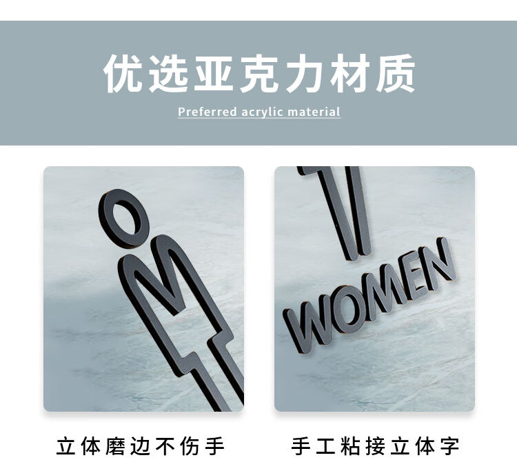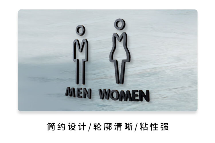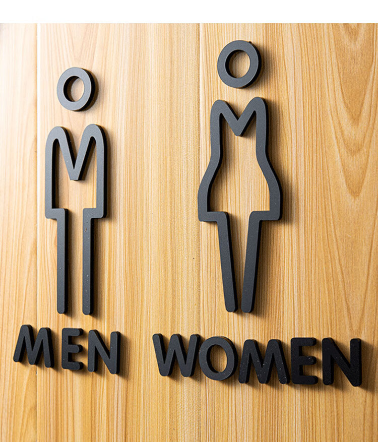 海斯迪克 男女洗手间指示牌 HKT-54 亚克力 款1-黑色-男女 25x16cm 1对