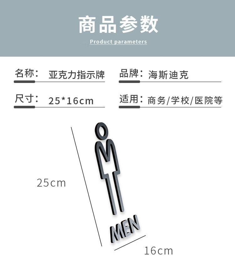 • 商品名称:海斯迪克 男女洗手间指示牌