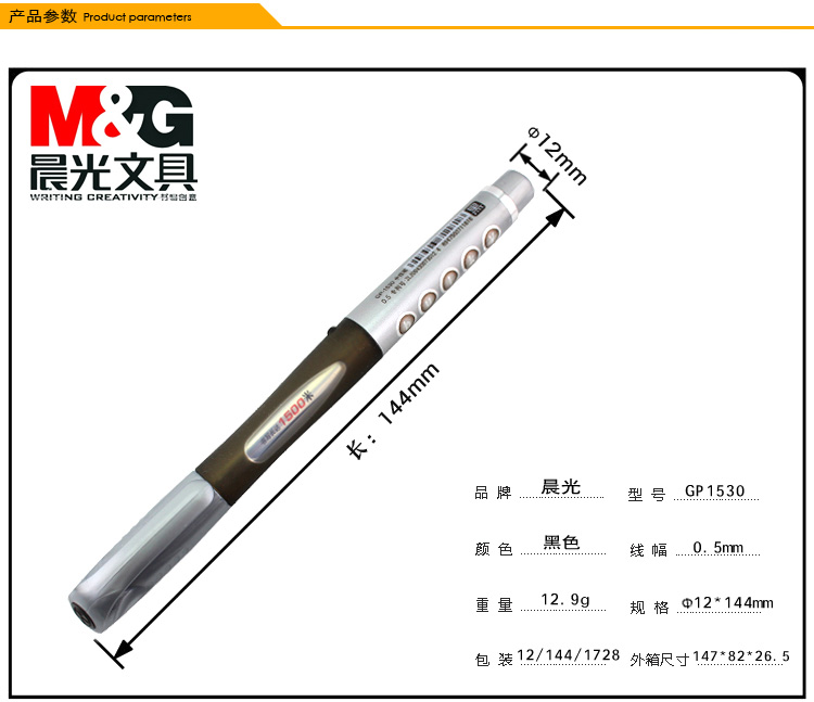 晨光 全针管中性笔 GP1530 黑色 0.5mm 12支*2盒 1件