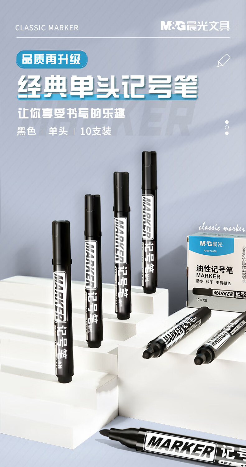 晨光 油性记号笔 APMY4008A 黑色 单头 10支 1盒