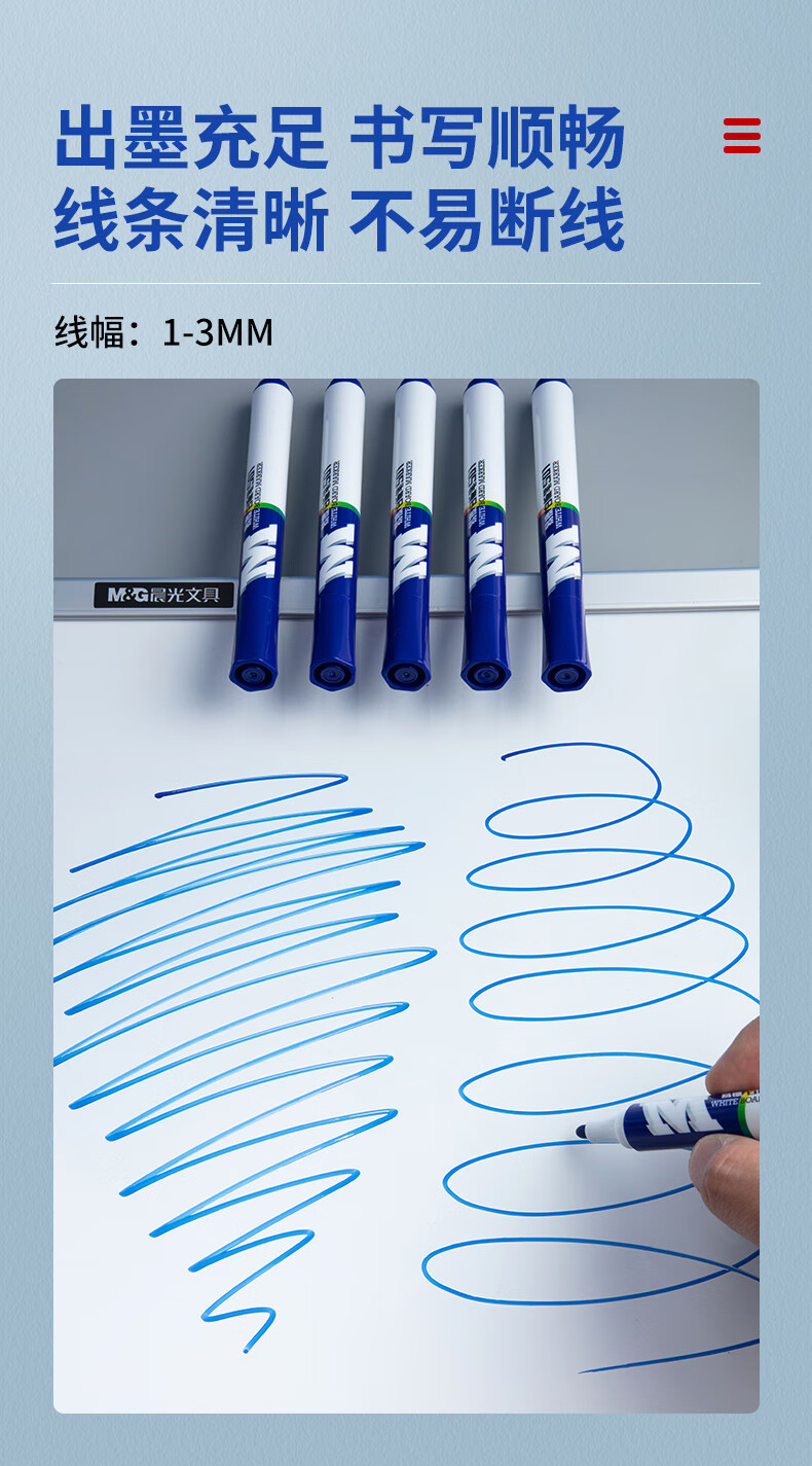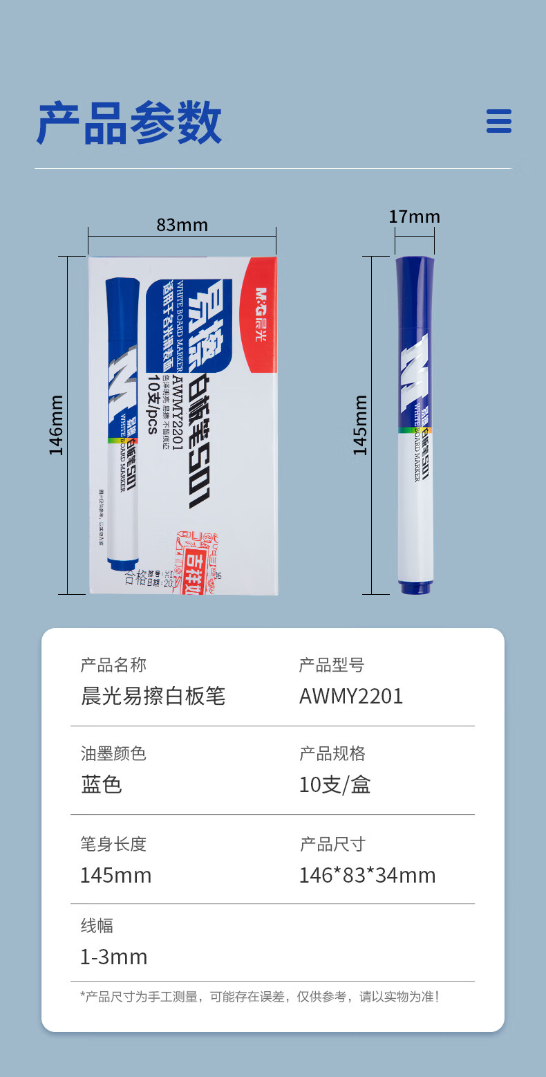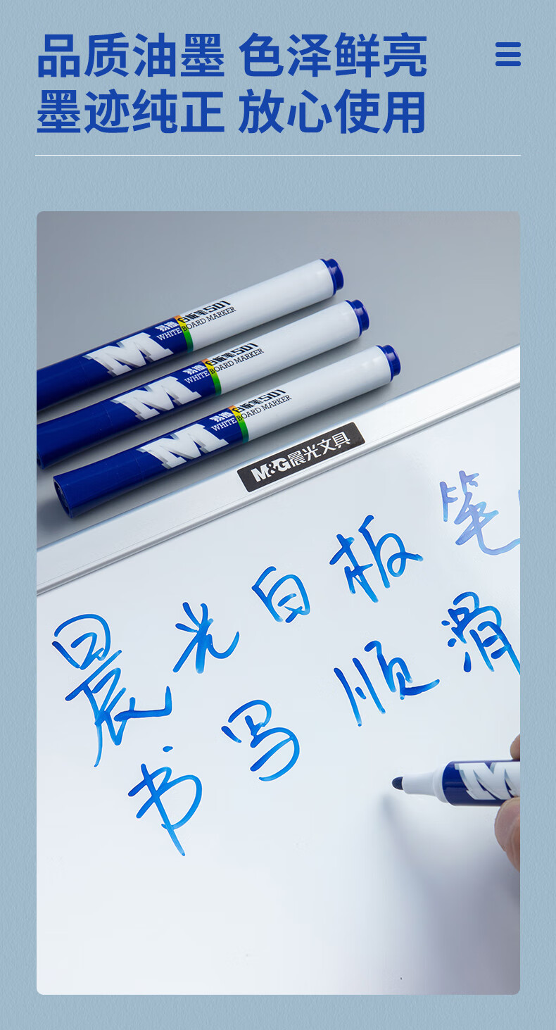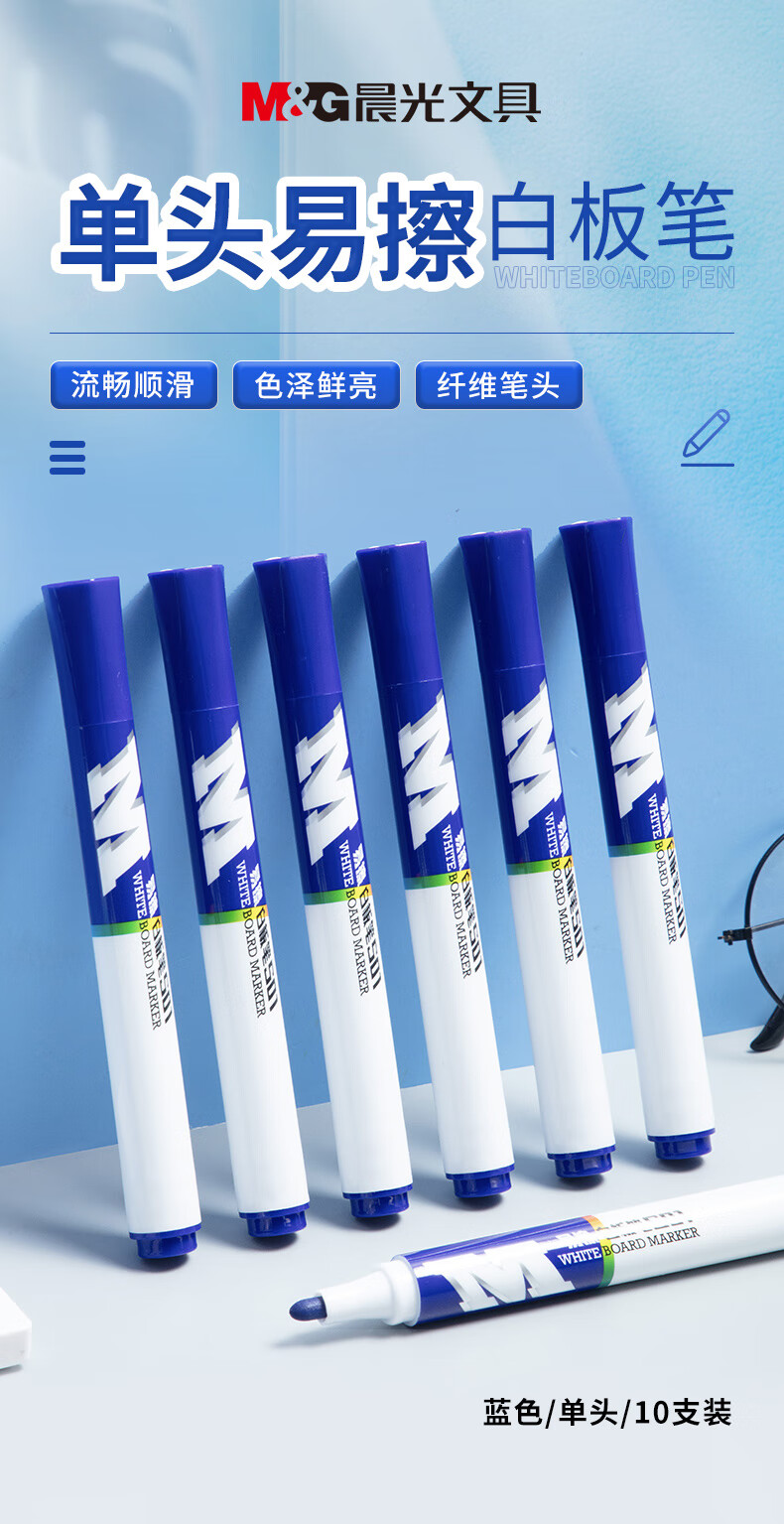 晨光 白板笔易擦S01 AWMY2201 单头蓝色 10支 1盒