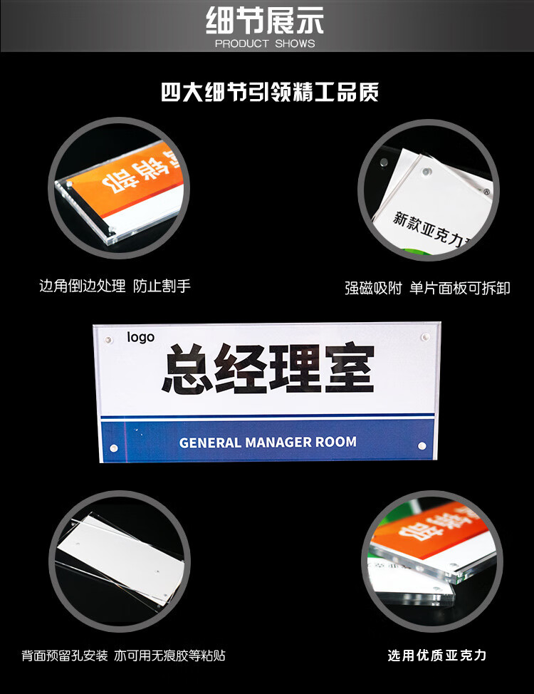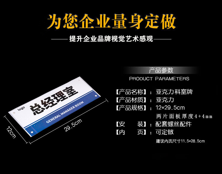 海斯迪克 可更换式磁吸亚克力科室牌 HKT-148 亚克力 12*29.5cm 董事长室 1个