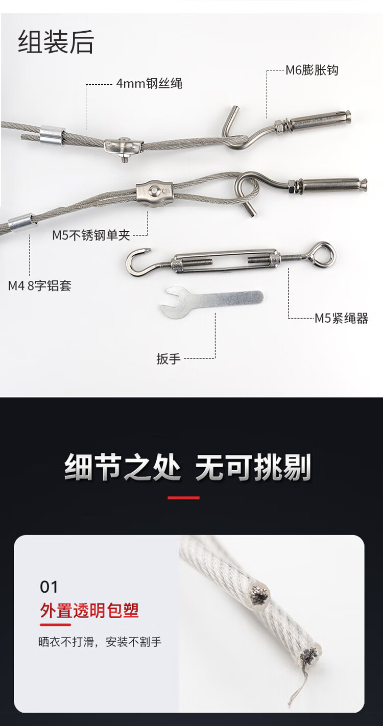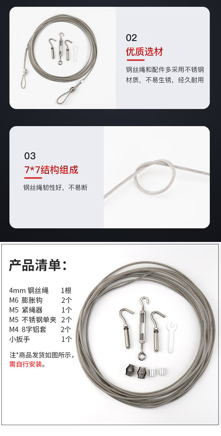 冰禹 钢丝绳套装 BYC-49 304不锈钢 16M 4mm 1件