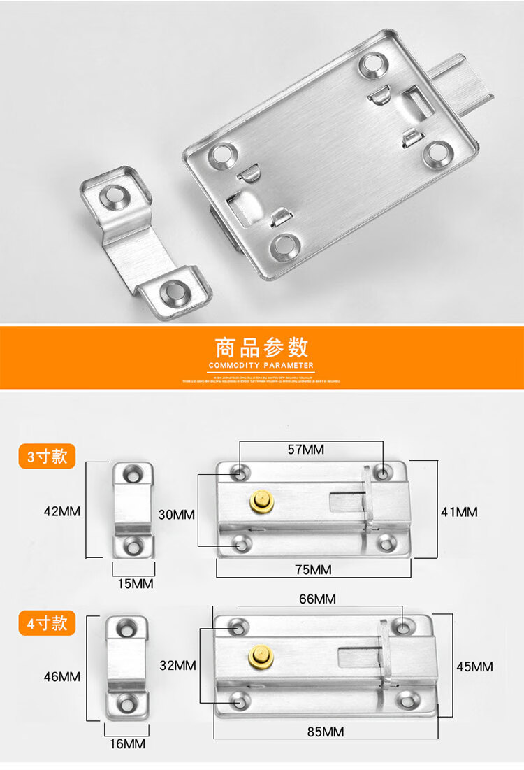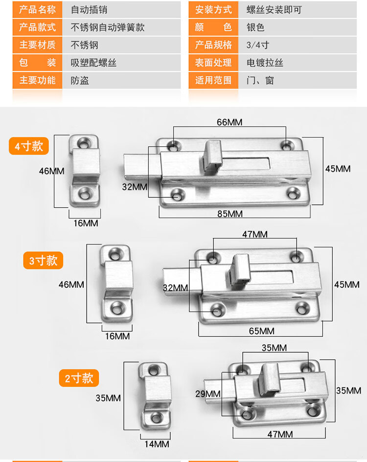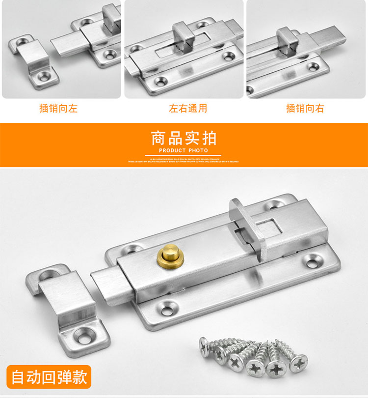 海斯迪克 不锈钢插销 HKDP-36 手动双向款(3寸) 1个
