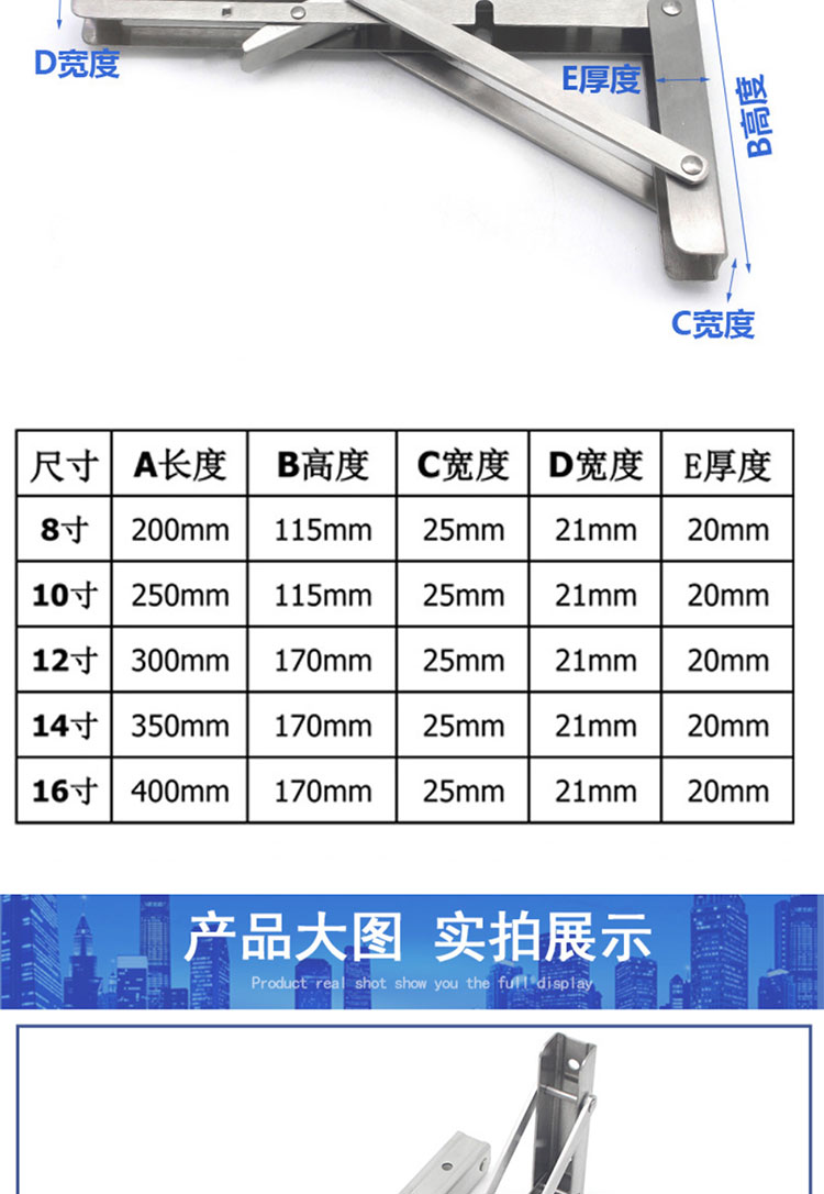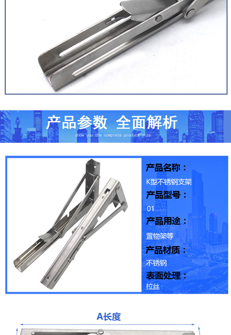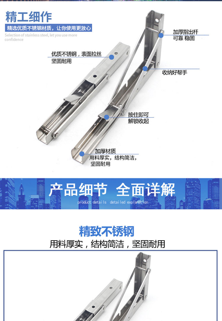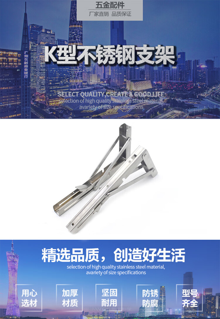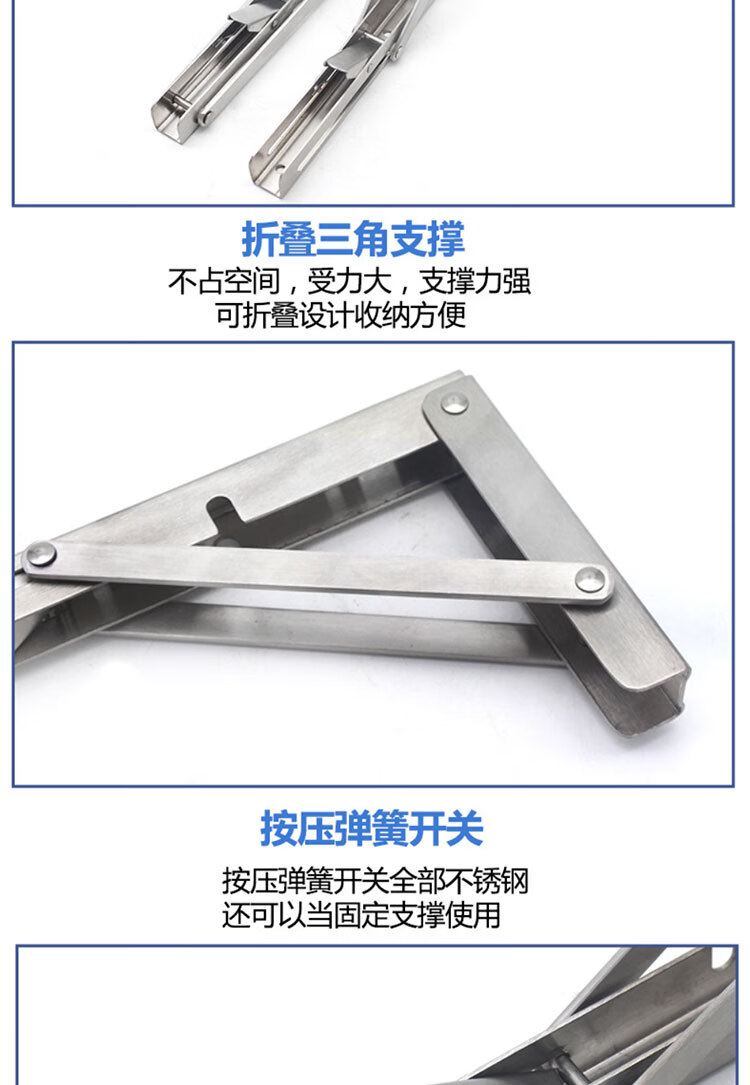 海斯迪克 加厚折叠支架 HKDP-71 不锈钢 不锈钢8寸 2个 1包