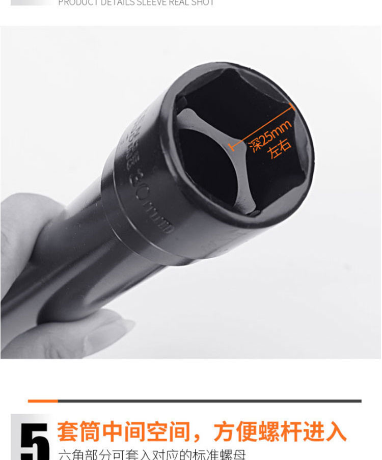 海斯迪克 六角套筒 HKCL-391 铬钒钢 24*150mm 黑色 1个