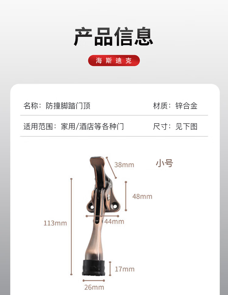 • 商品名称:海斯迪克 脚踏门吸 配螺丝