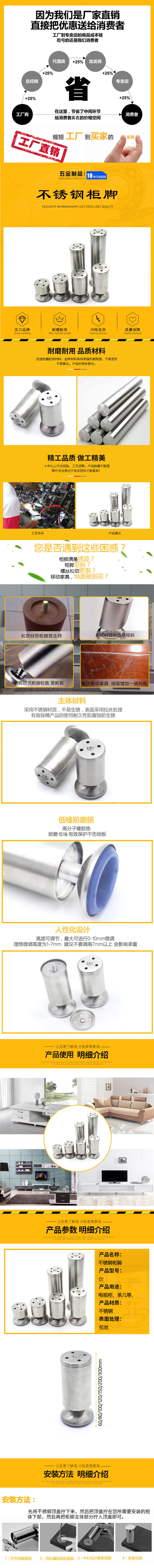 海斯迪克 加厚不锈钢柜脚 HKqy-82 可调节 直径50mm 高100mm 2只 1包