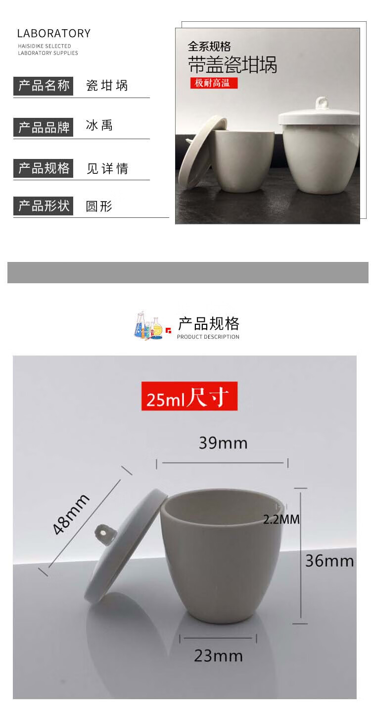 冰禹 陶瓷坩埚 BY-2314 25ml 1200℃ 5个 1件