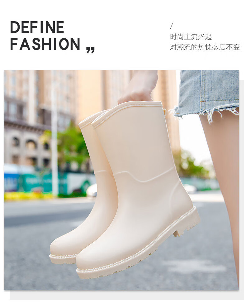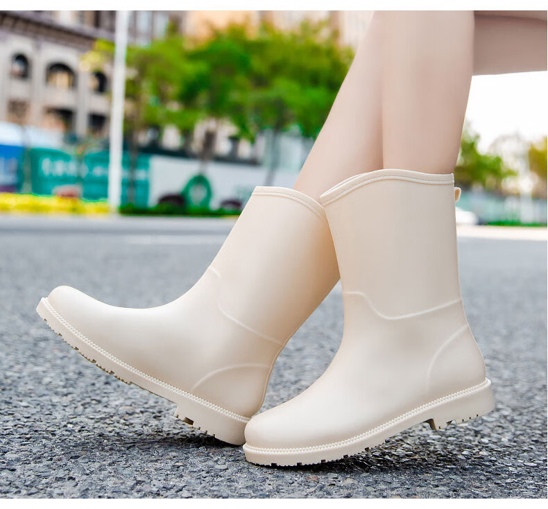 冰禹 雨鞋 BH-129 杏色 38 女款中筒 1双