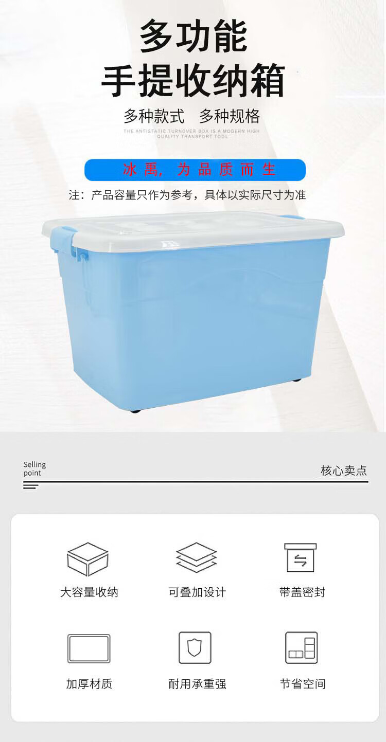 冰禹 塑料带提手收纳箱 BYA-234 PP 透明款 加大号 40L 1个