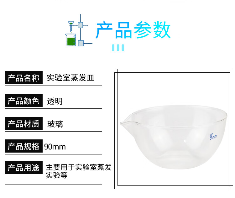 海斯迪克 玻璃平底蒸发皿 HKCL-340 90mm 1个