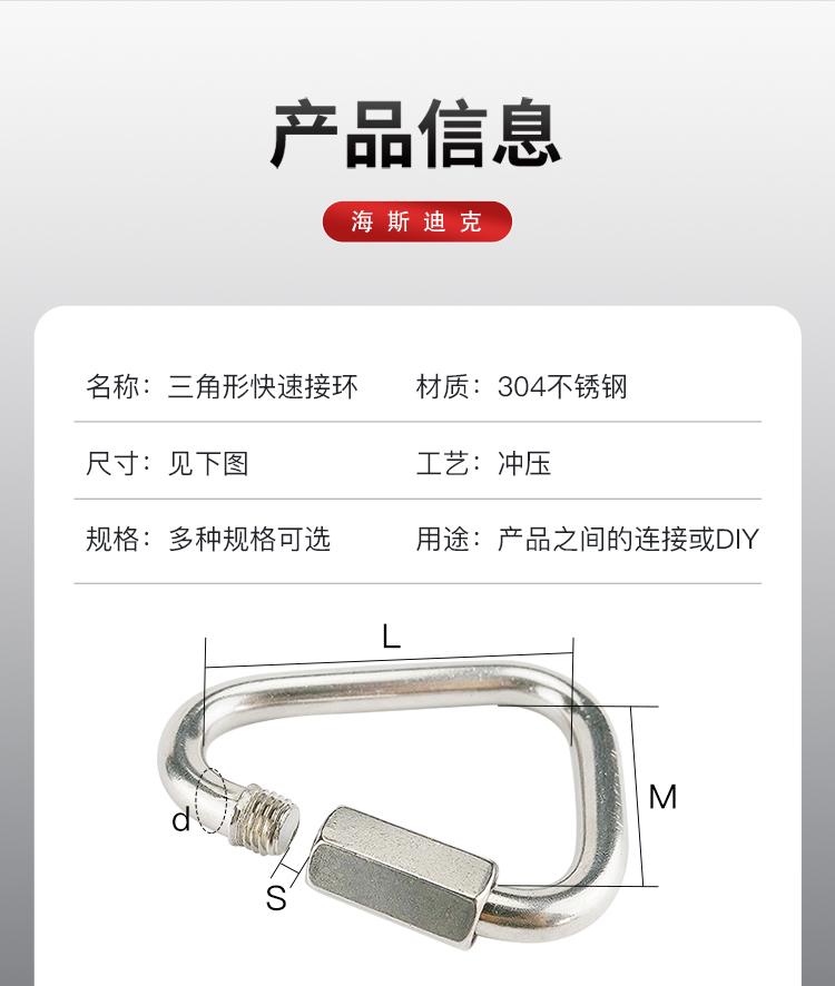 海斯迪克 三角形快速接环 HKCL-588 M6 304不锈钢 1个