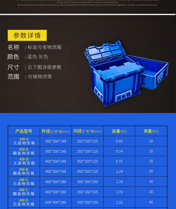 冰禹 塑料周转箱 BY-634 HDPE 灰色 A箱 有盖 1个
