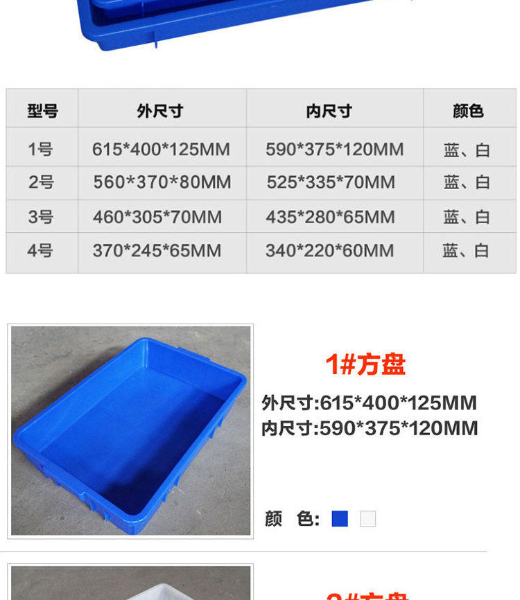 冰禹 塑料方盘 BY-669 HDPE 白色 4号 370*250*65mm 1个