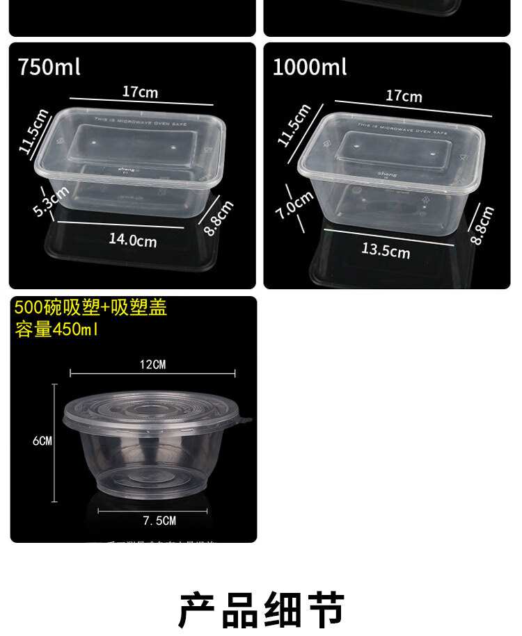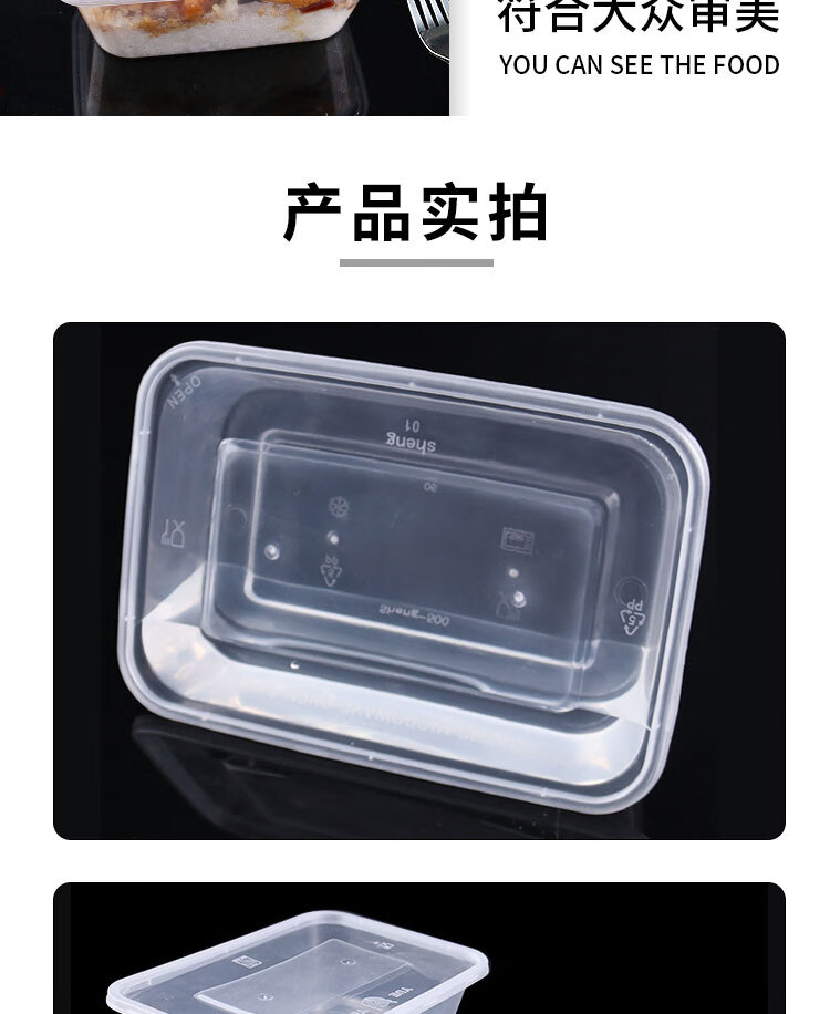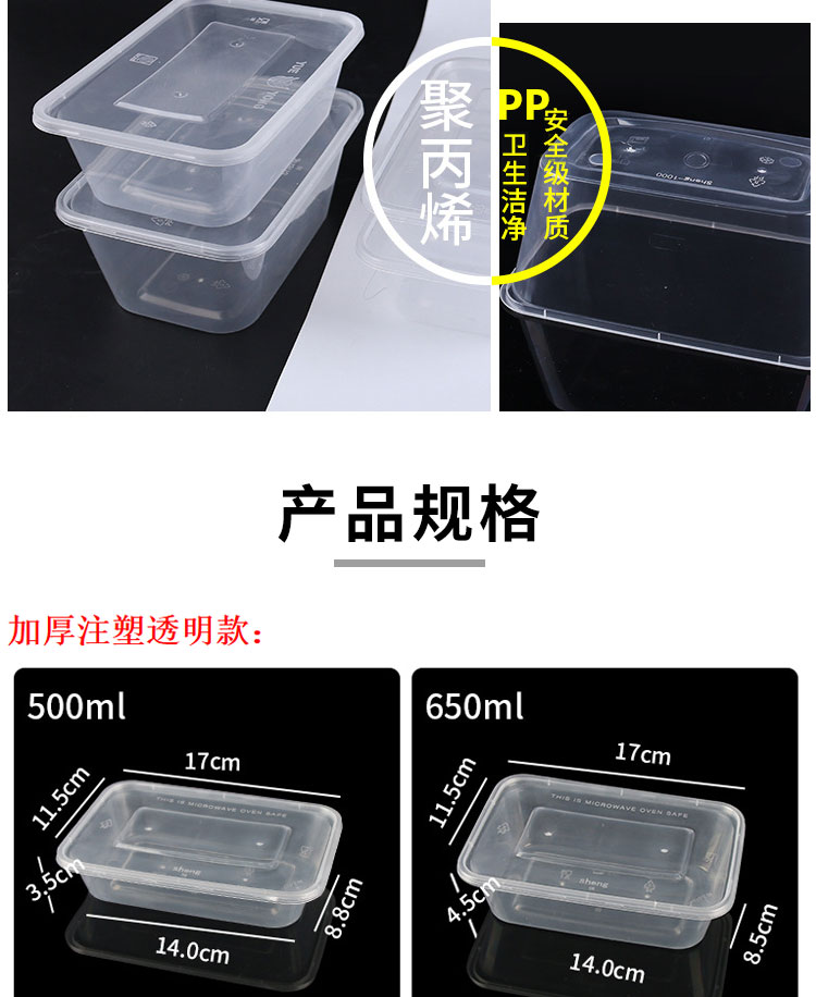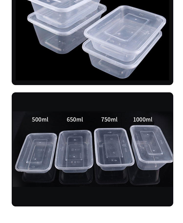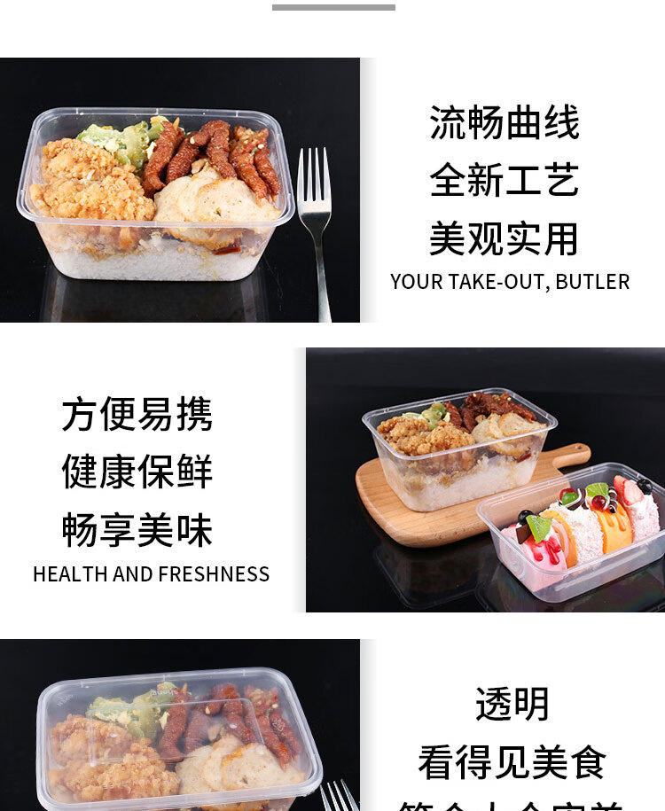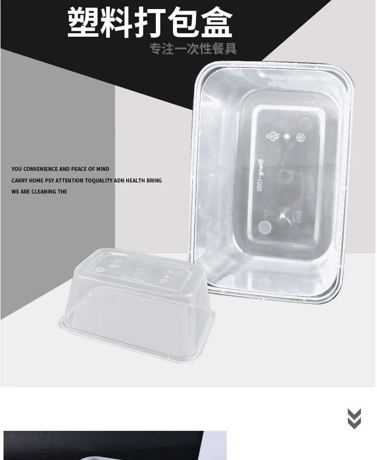 冰禹 一次性餐盒打包盒 BYyn-797 PP 透明 1000ml 20个 1包