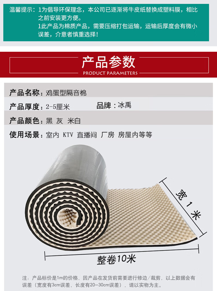 冰禹 隔音棉自粘 BYlj-244 棉质 米白色 厚16mm 1*5m 1卷