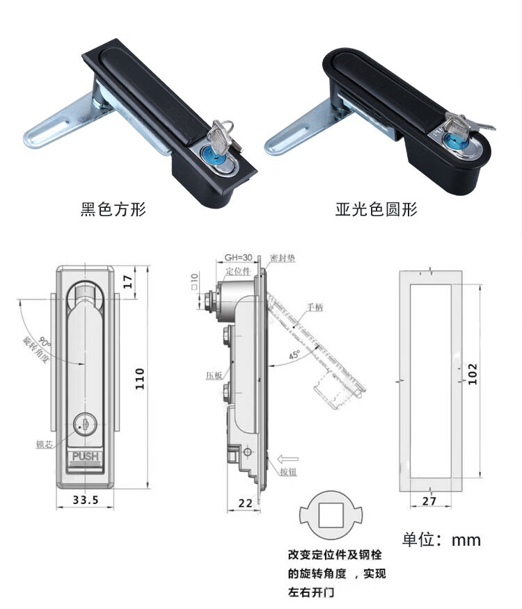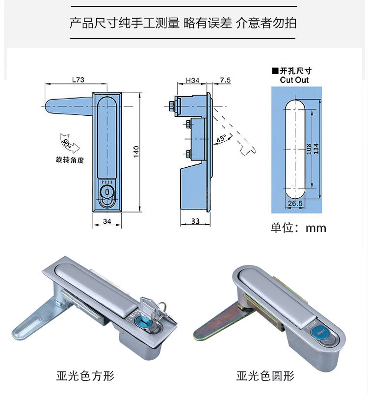海斯迪克 电器箱平面锁 HKQL-37 锌合金 亚光色圆形 1个