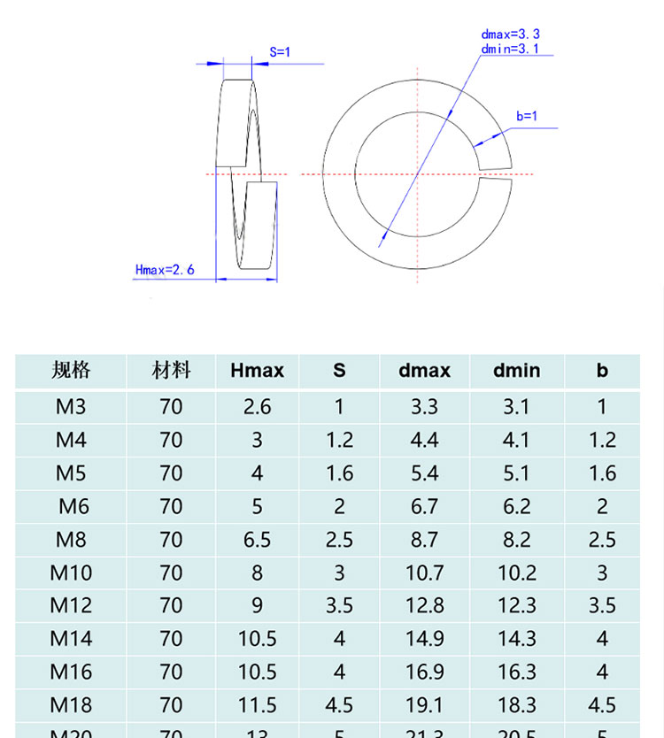 冰禹 弹簧垫圈 BY-1152 碳钢 发黑 GB93-76 M5 2000个 1包
