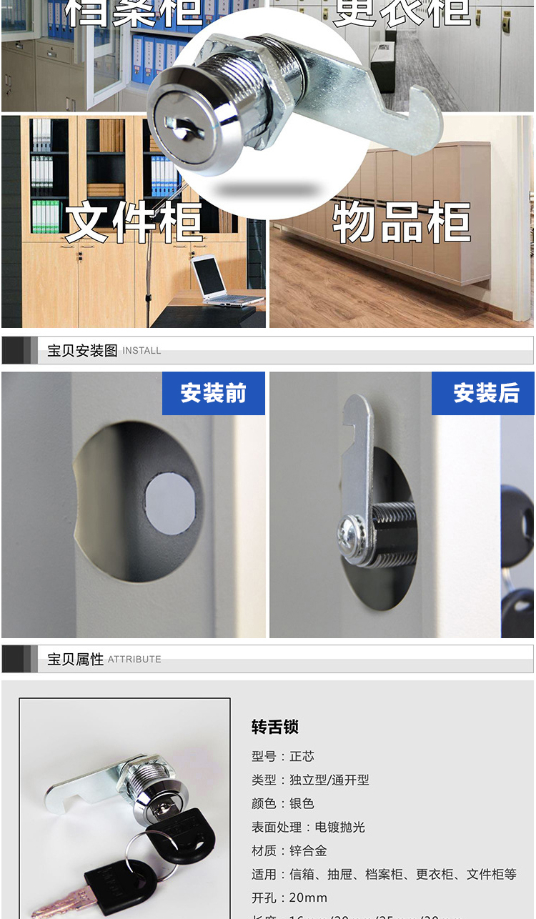 海斯迪克 电箱锁转舌锁 HKLY-216 锌合金 25mm通开 10个 1包
