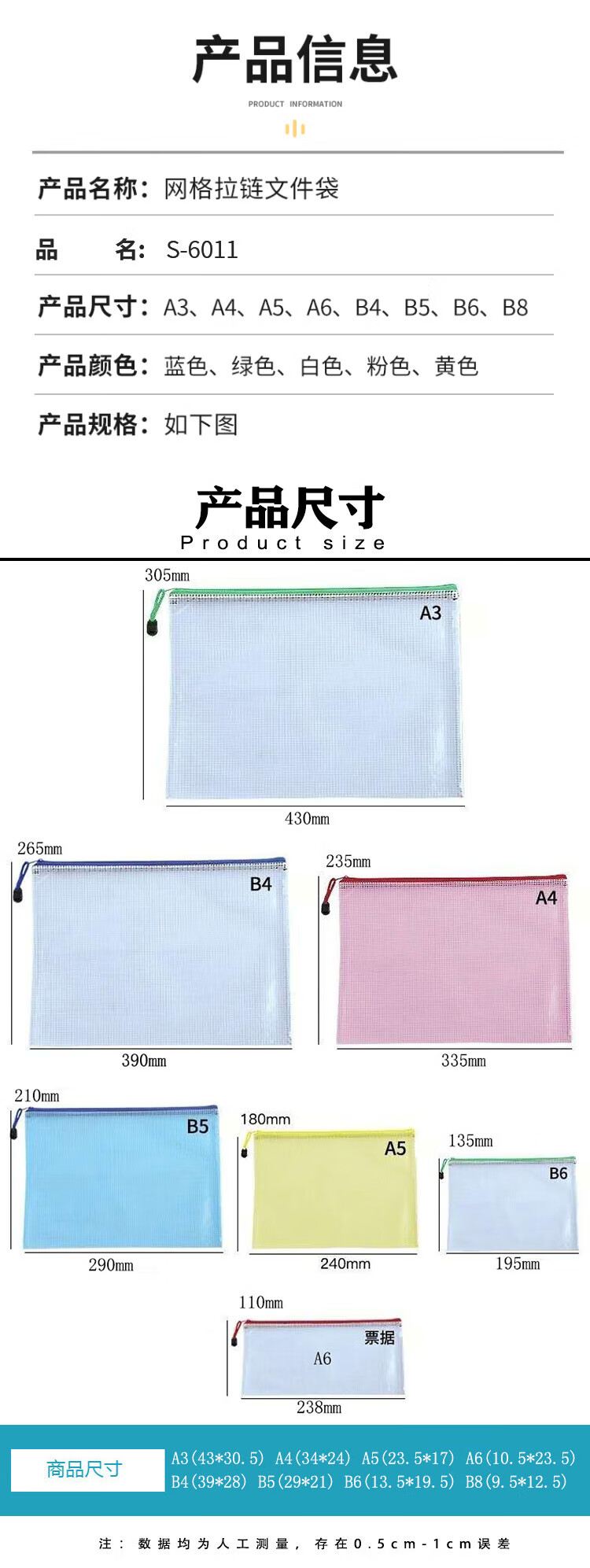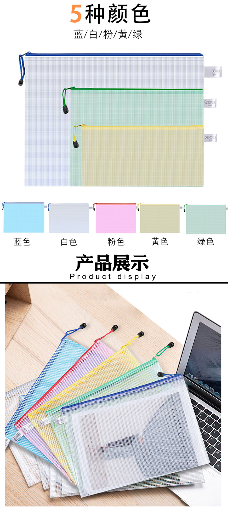 海斯迪克 网格拉链文件袋票据袋 H-141 颜色随机 B8 9.5CM*12.5CM 1个