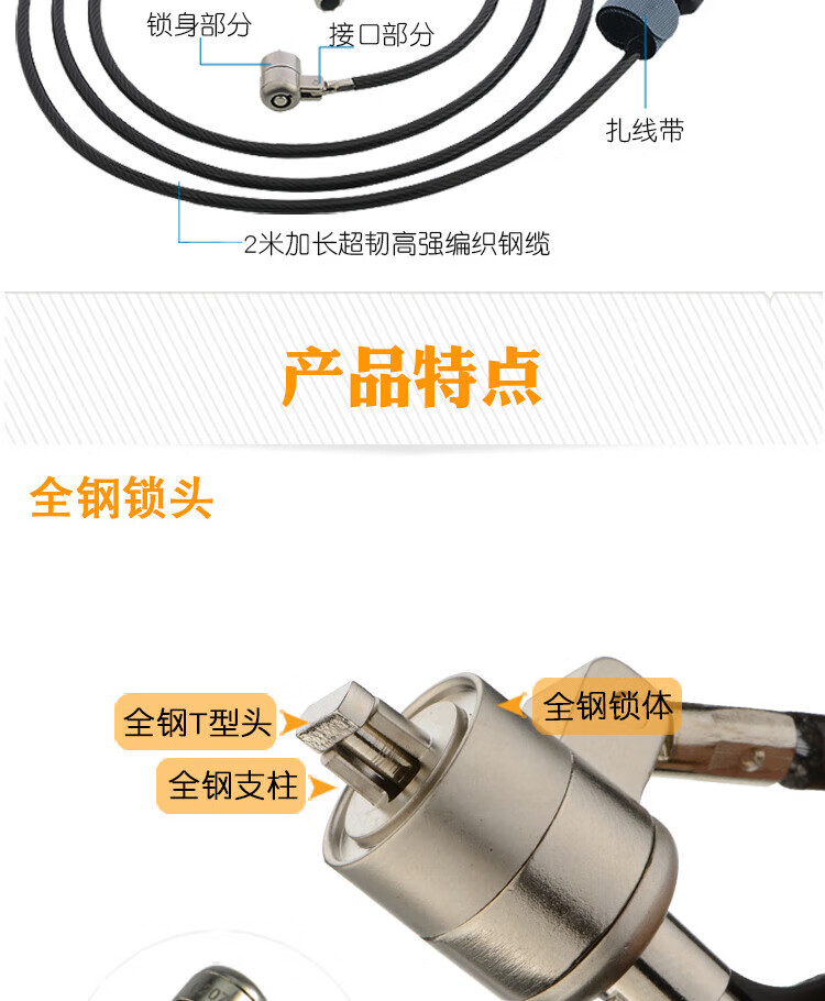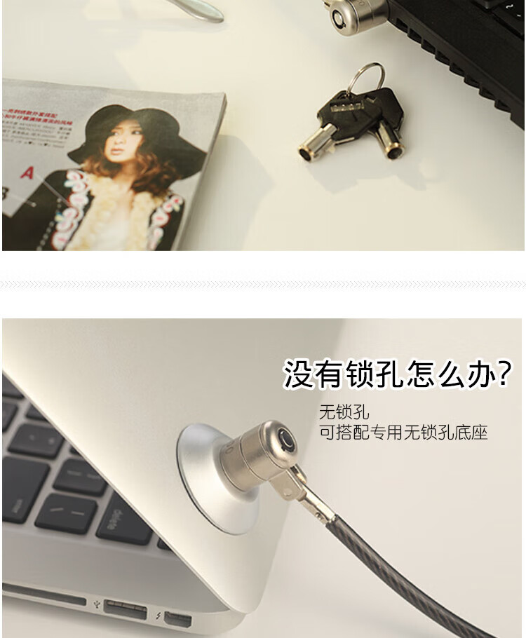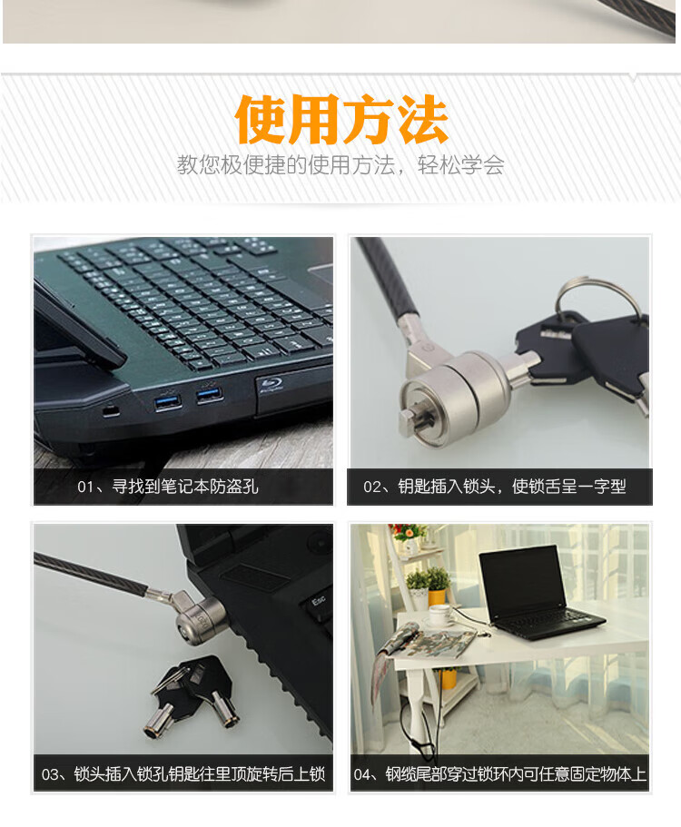 海斯迪克 笔记本锁 HKT-185 钢缆2m 1个