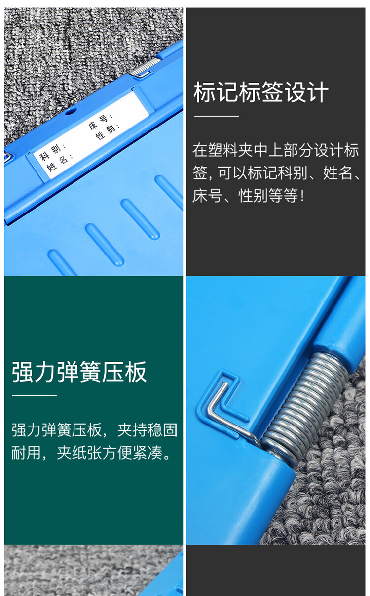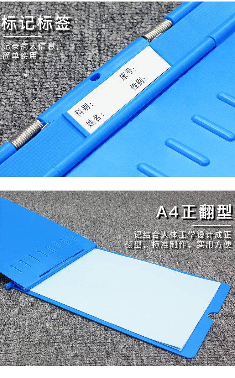 海斯迪克 塑料病历夹 HKQS-87 灰色 23*33*0.7cm 1个