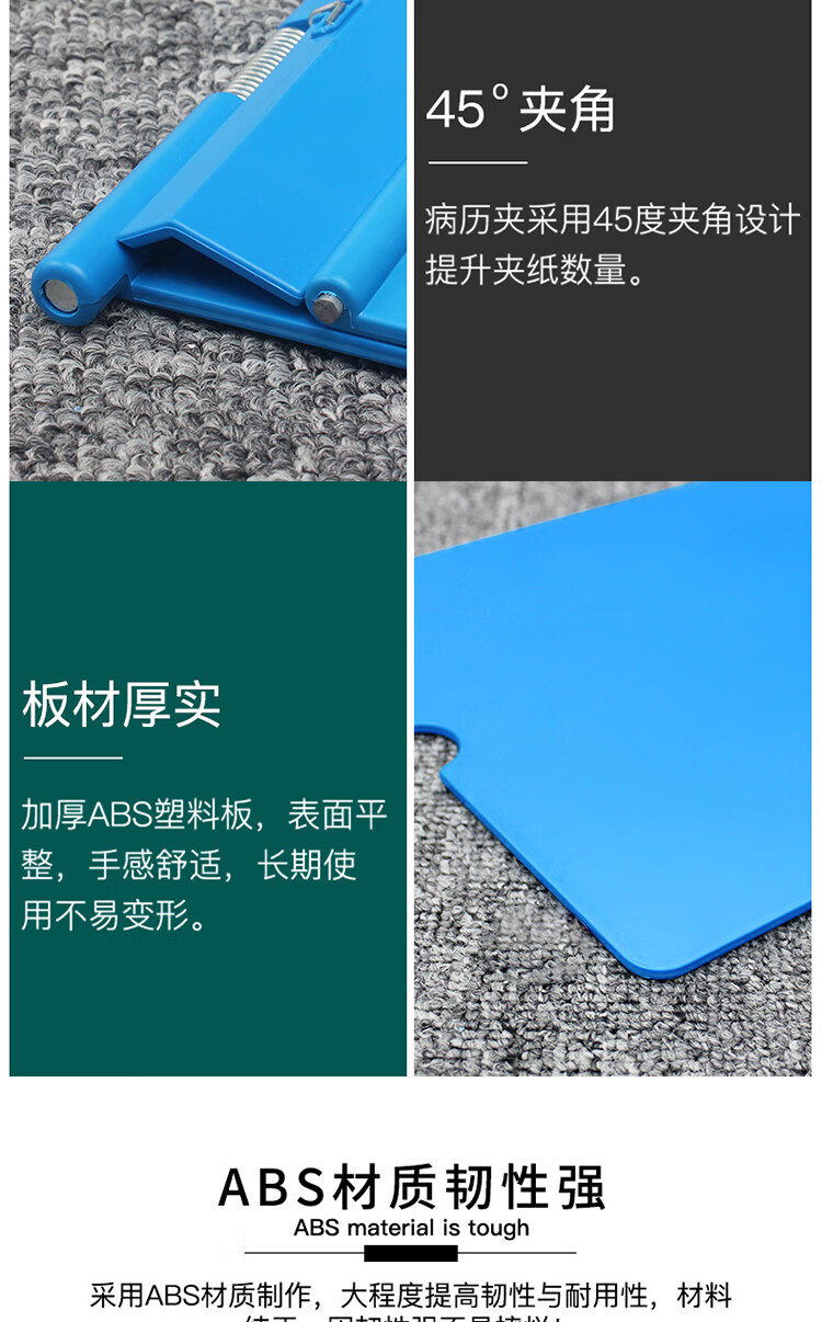 海斯迪克 塑料病历夹 HKQS-87 深蓝色 23*33*0.7cm 1个