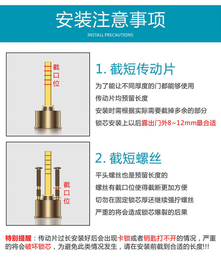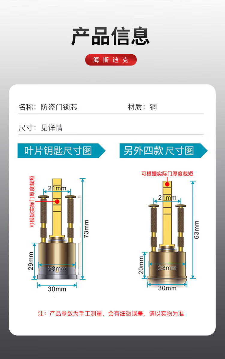 海斯迪克 外装防撬锁芯 HKQL-6 锁芯一字钥匙款 1个
