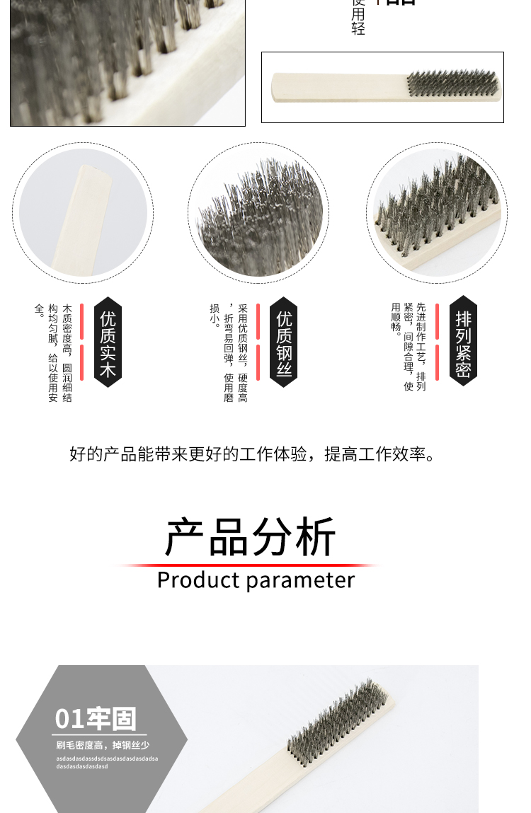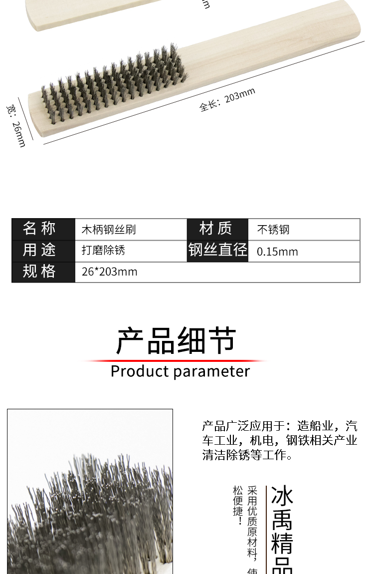 冰禹 木柄钢丝刷 BY-2339 26*203mm 钢丝刷 1把