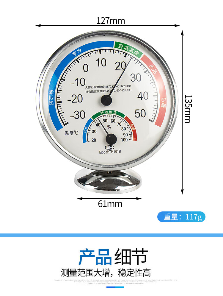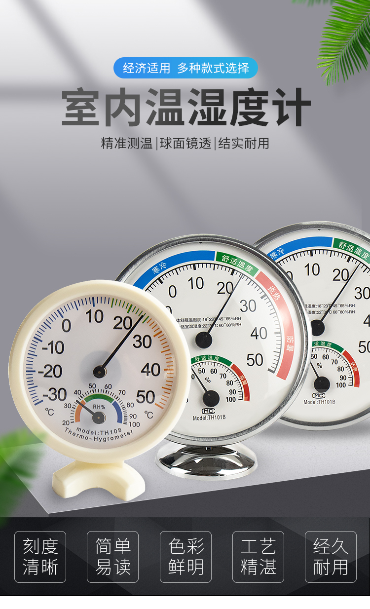 海斯迪克 圆形指针式温度计 HKCL-296 13cm大号带底座 127*135*61mm 1个