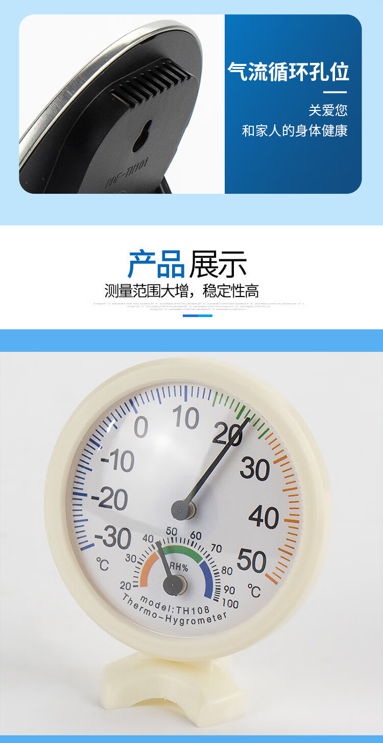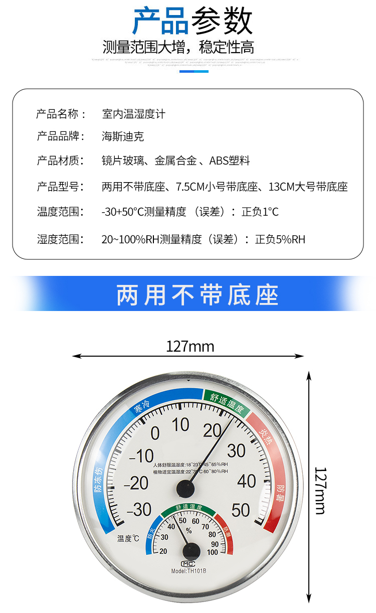海斯迪克 圆形指针式温度计 HKCL-296 7.5cm小号带底座 74*85*39mm 1个