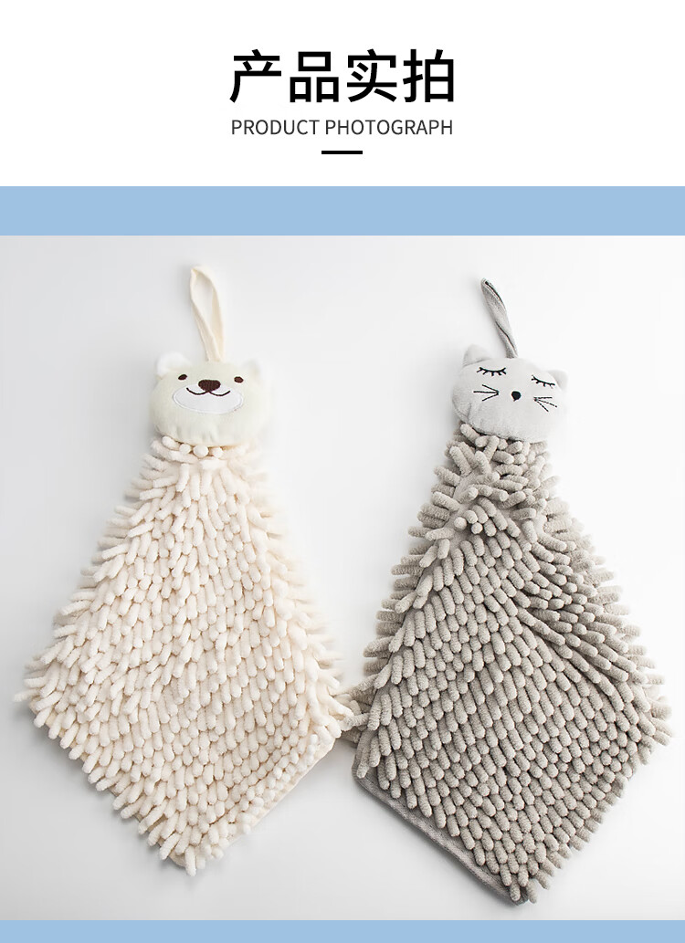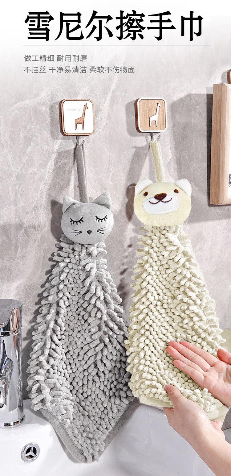 海斯迪克 挂式雪尼尔擦手巾 HKF-2 白色 26*28cm 雪尼尔 1个