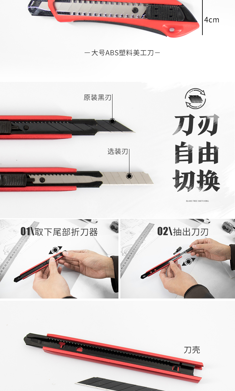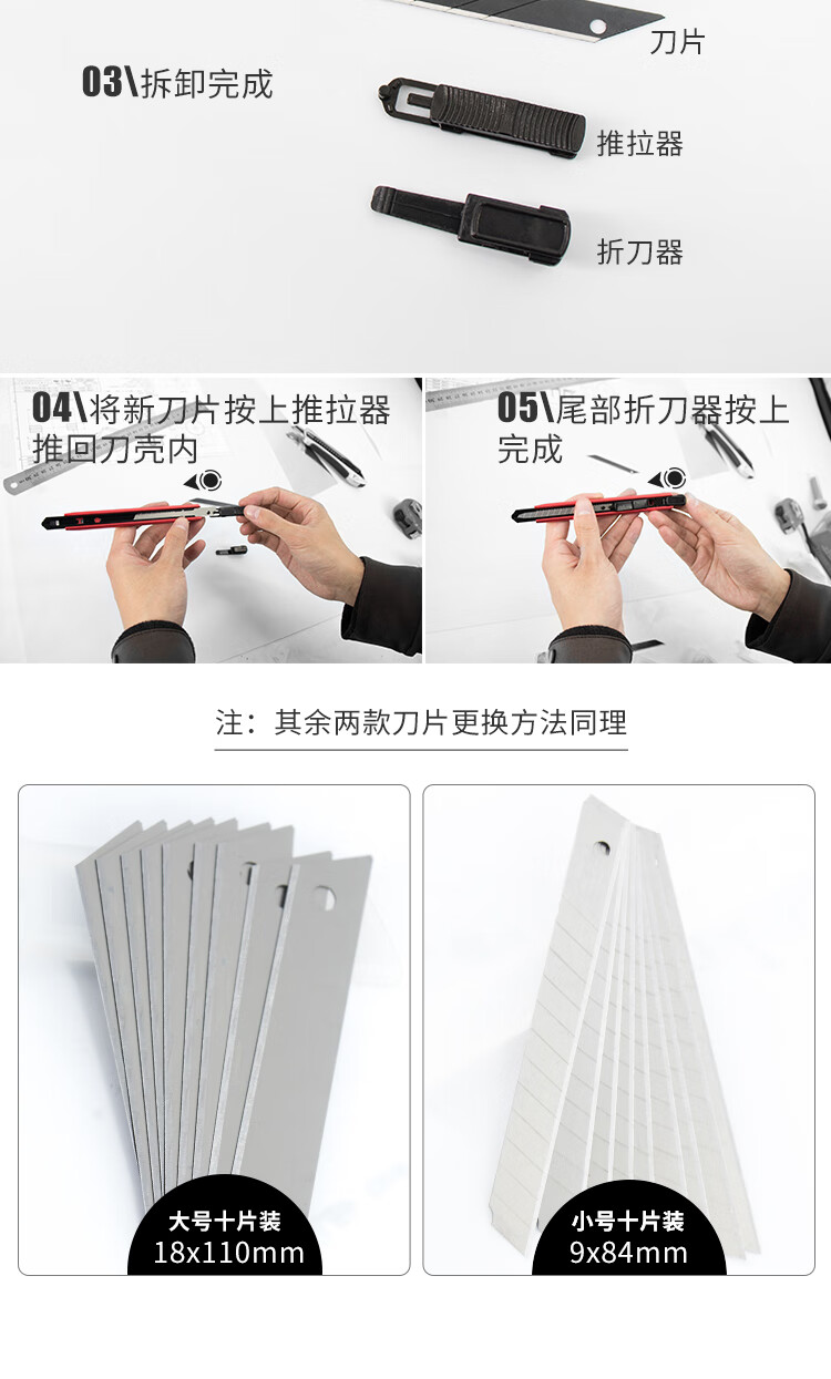 海斯迪克 自锁美工刀片 H-8 18mm刀片 需组合 1盒